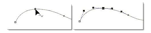 Biểu tượng Make Node A Smooth: chuyển một nút thànhn một nút trơn. Nút trơn là nút với hai đường điều khiển có chiều dài khác nhau nhưng di chuyển cùng phương. Nút trơn làm cho đường cong đi qua nút mềm mại và không gãy.